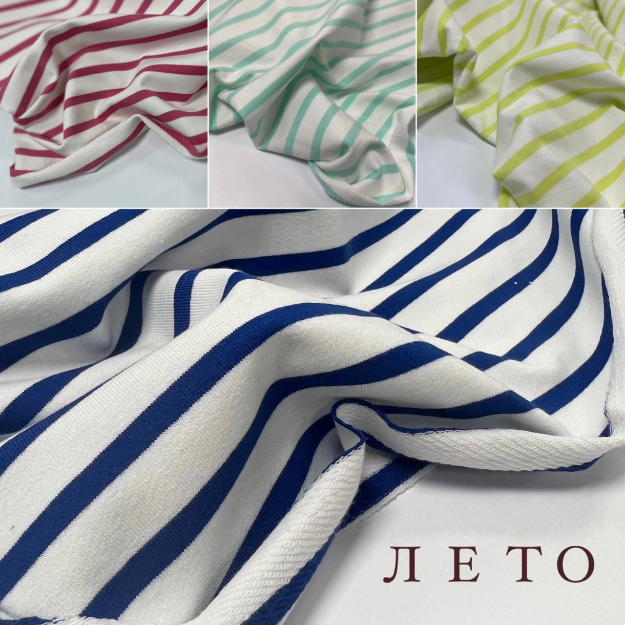 На фото двунитка с цветом полос: мята, лайм, фуксия, василек