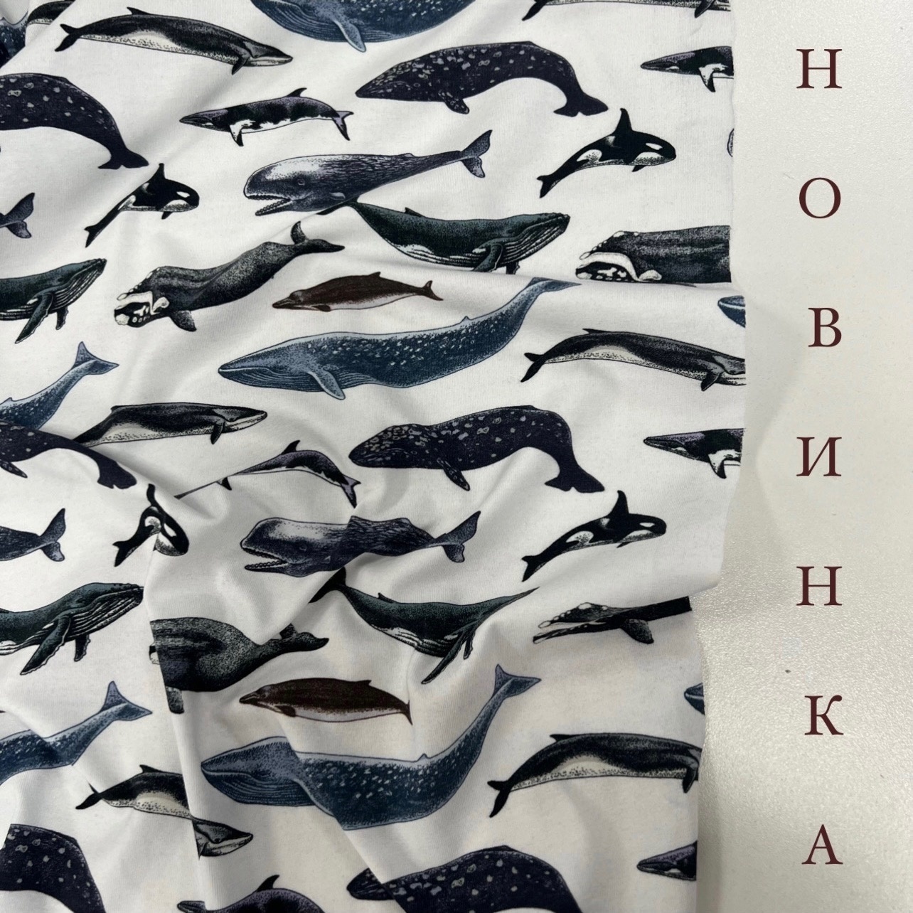 Кулирная гладь с лайкрой с принтом «Киты»